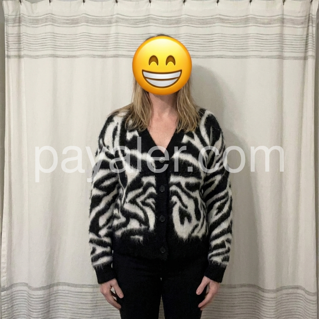 Free shipping on orders over $79. Coupons for you: S15/ S20/ SAVE5/ SAVE10Elevate your wardrobe with this bold zebra-print knit cardigan crafted from a luxurious soft mohair blend. Its distinctive pattern adds a striking visual contrast, while the mohair fibers ensure lightweight warmth and a plush texture. Designed for both style and comfort, this cardigan is ideal for layering during transitional seasons, providing a sophisticated yet edgy statement piece to your collection.